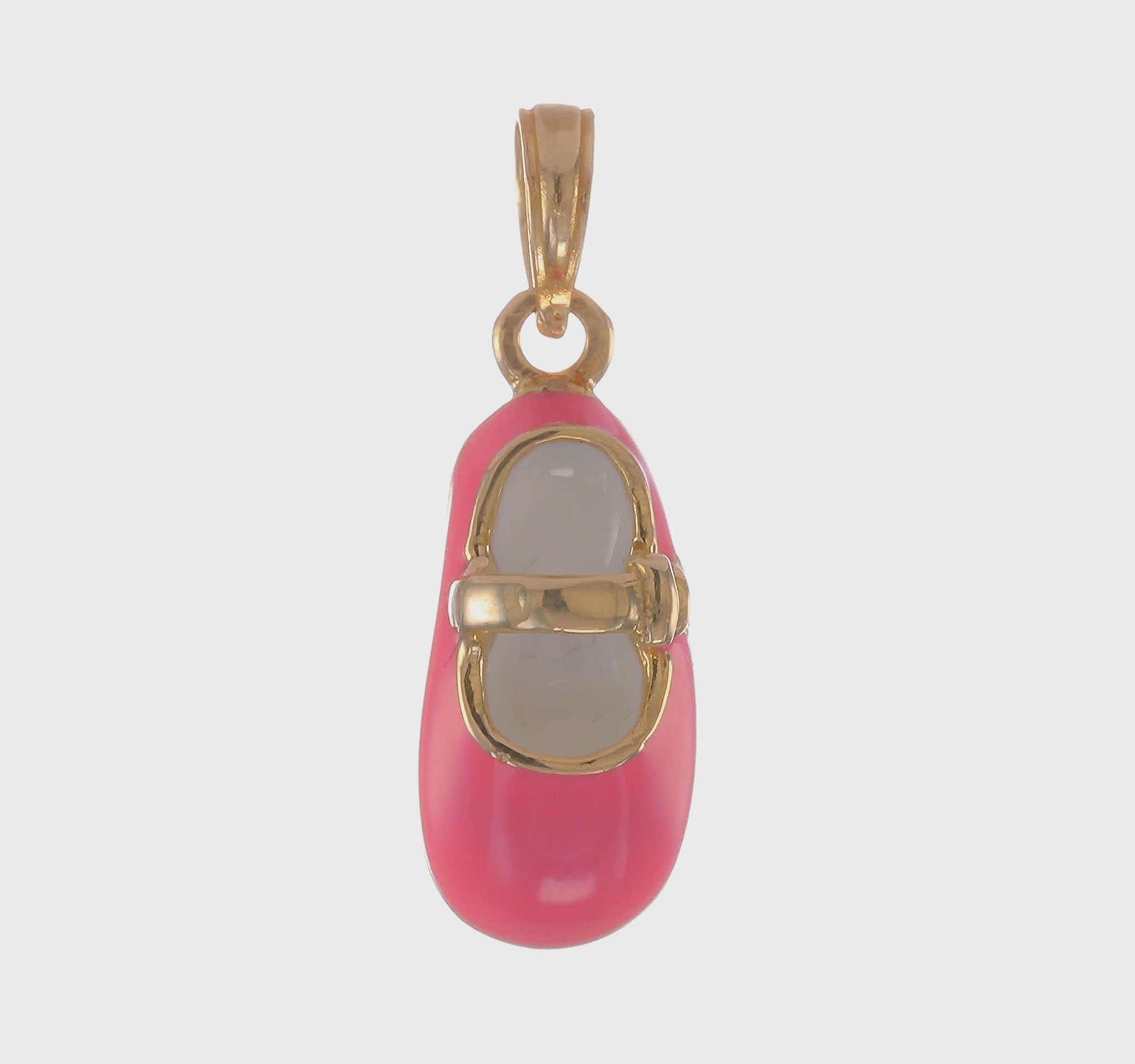 Charming 14K Yellow Gold & Pink Enamel 3-D Baby Shoe Charm