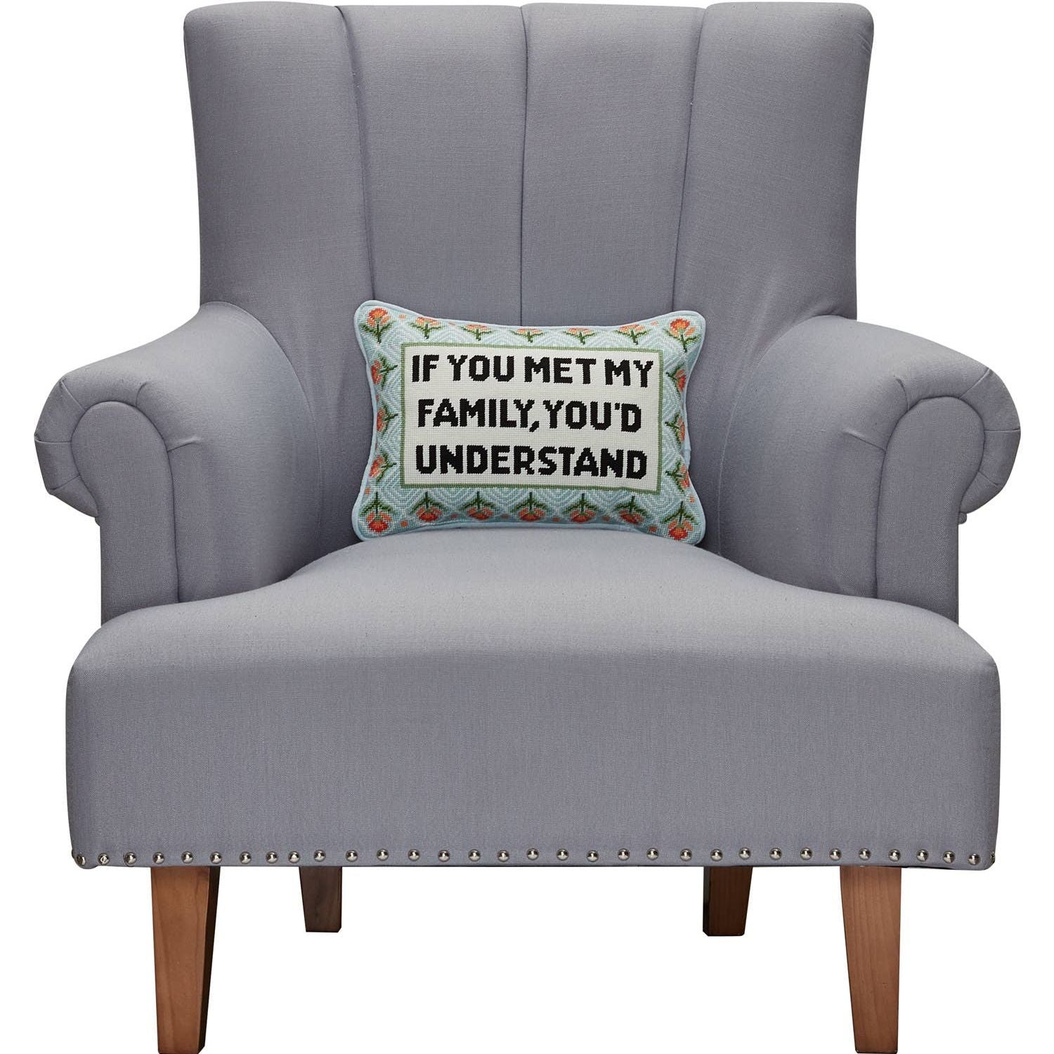 “If You Met My Family” Embroidered Needlepoint Pillow — 10” x 14” Needlepoint-Style Accent